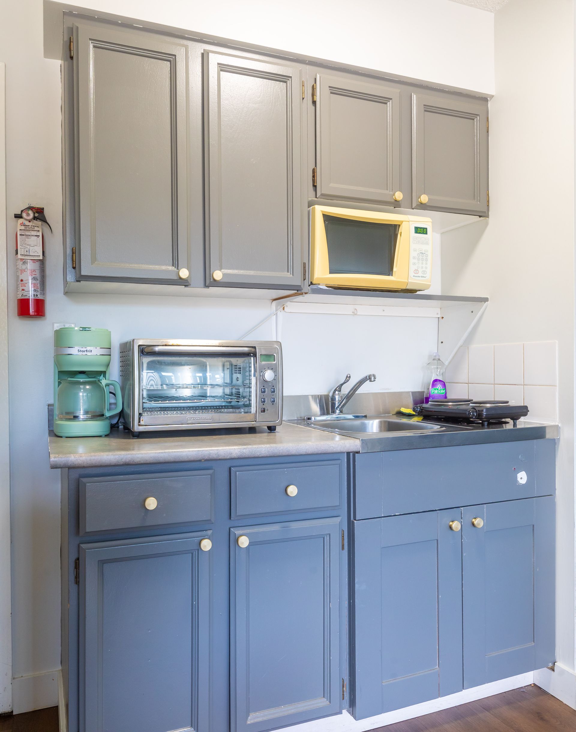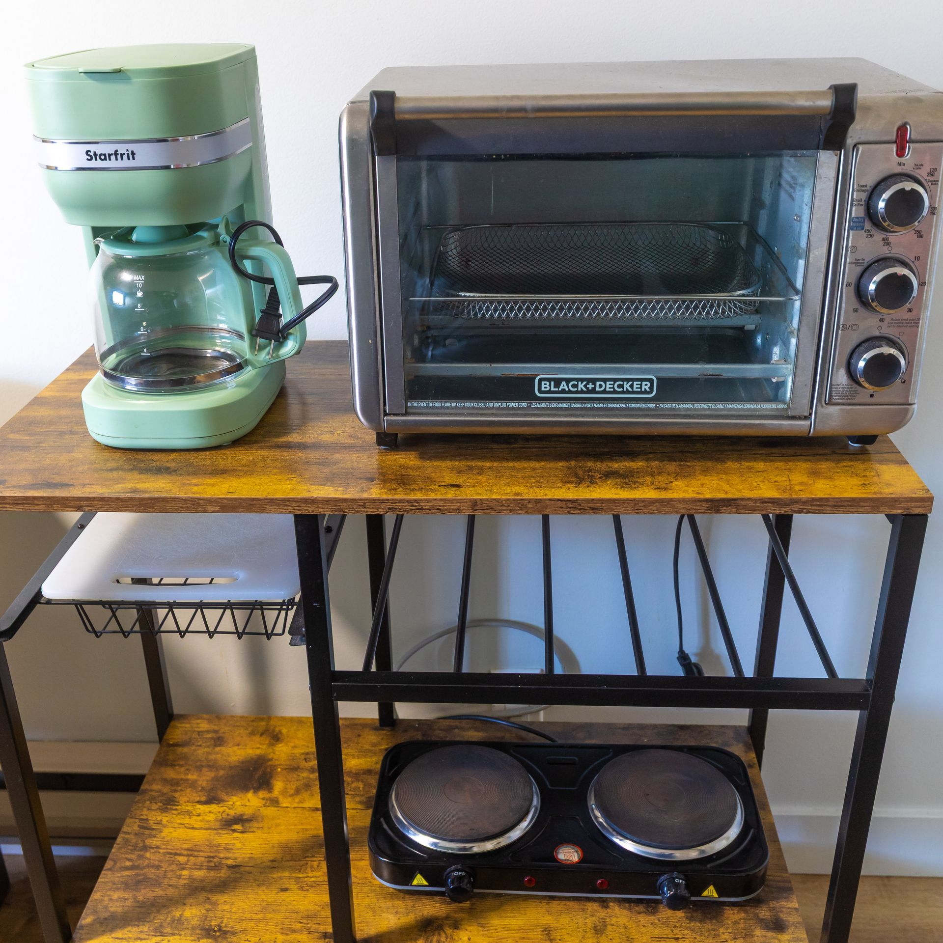 - Mini Kitchenette: Equipped with a microwave, refrigerator, coffee pot (with complimentary coffee/tea and condiments), and essential kitchenware.