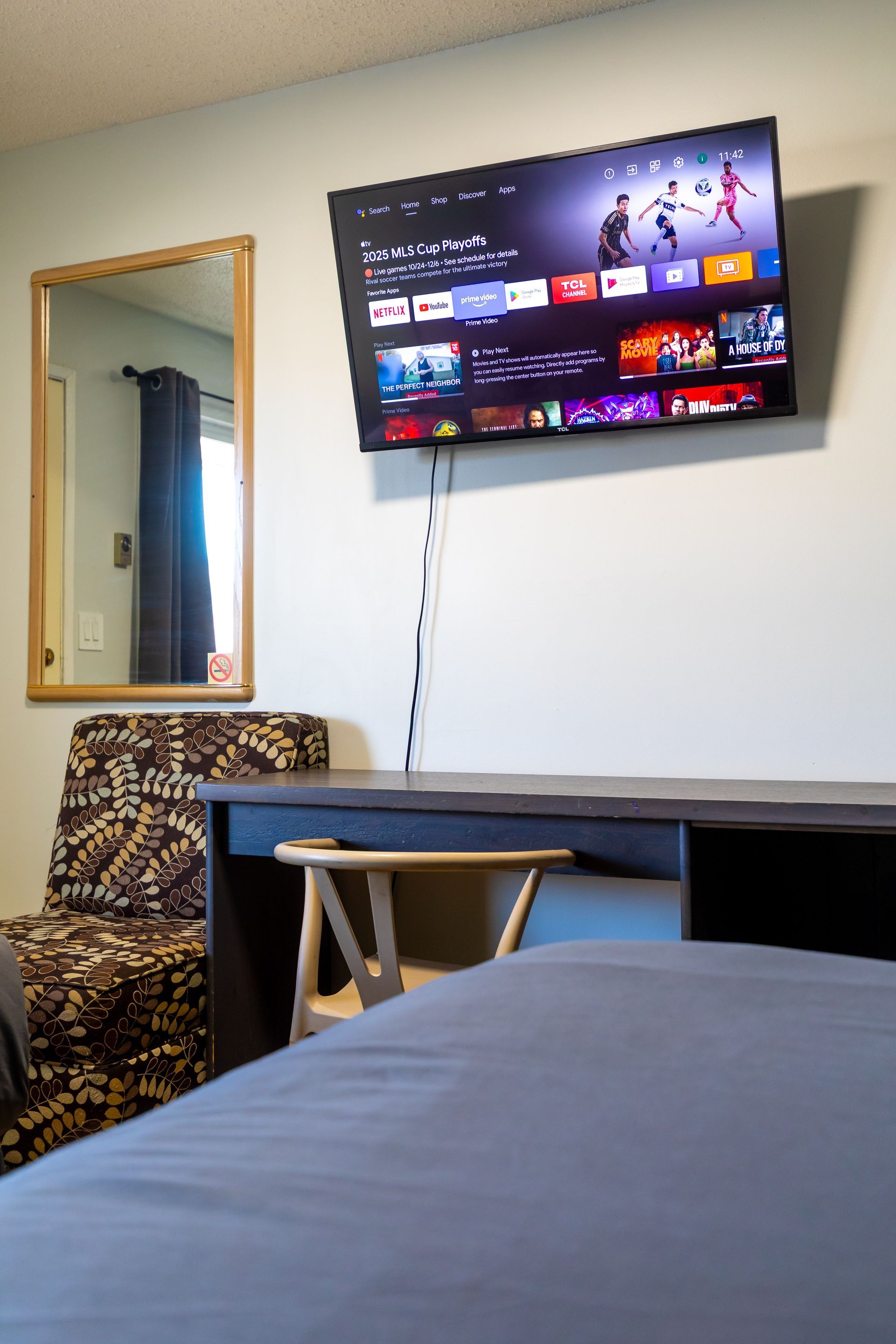 - Entertainment: A 43-inch Smart TV with streaming options like Netflix and Prime Video, plus a radio alarm clock.