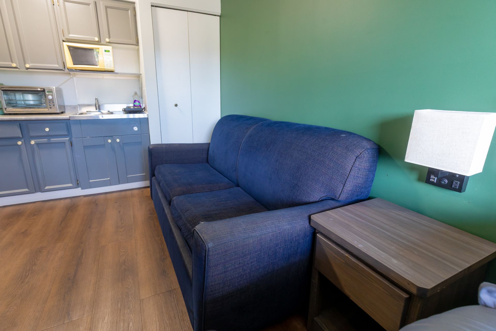These spacious rooms are thoughtfully designed with cozy furnishings, creating a home-away-from-home atmosphere. A kitchenette with essential cookware and dishes adds to the convenience of your stay.